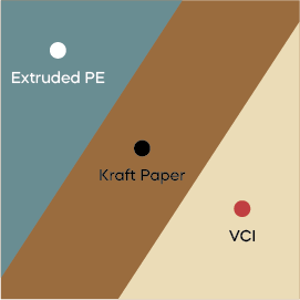 VCI Laminated Kraft Paper is made from natural Kraft paper laminated with film on one side and other side VCI coating.